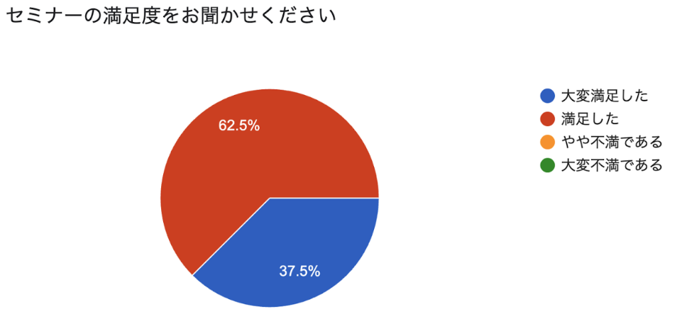 セミナー後のアンケートでは、ご回答いただいた参加者の皆様全員から「満足」とのご評価をいただくことができました。
