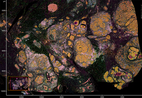 最先端の解析手法で、組織切片上での遺伝子発現の空間的分布を可視化し、組織構造と遺伝子発現の関係を明らかにすることをサポートします。